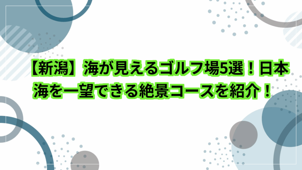 海が見える新潟のゴルフ場でプレーできたら、開放感があって気分が爽快ですね。 ・日本海を望む絶景の中で爽快にプレーしたい ・海沿いならではの開放感あるコースを探している ・プレー後の食事や周辺観光も楽しみたい そこで今回は、新潟の海が見えるゴ... -