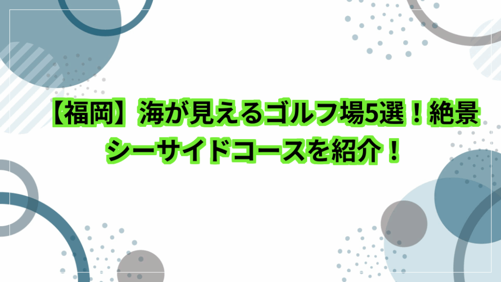 海が見える福岡のゴルフ場でプレーできたら、気分が爽快ですね。 ・波音を聞きながらリゾート気分でリフレッシュしたい ・海沿いならではの開放感あるコースでショットを打ちたい ・福岡のおいしい食事と絶景をセットで楽しみたい そこで今回は、福岡の海... -